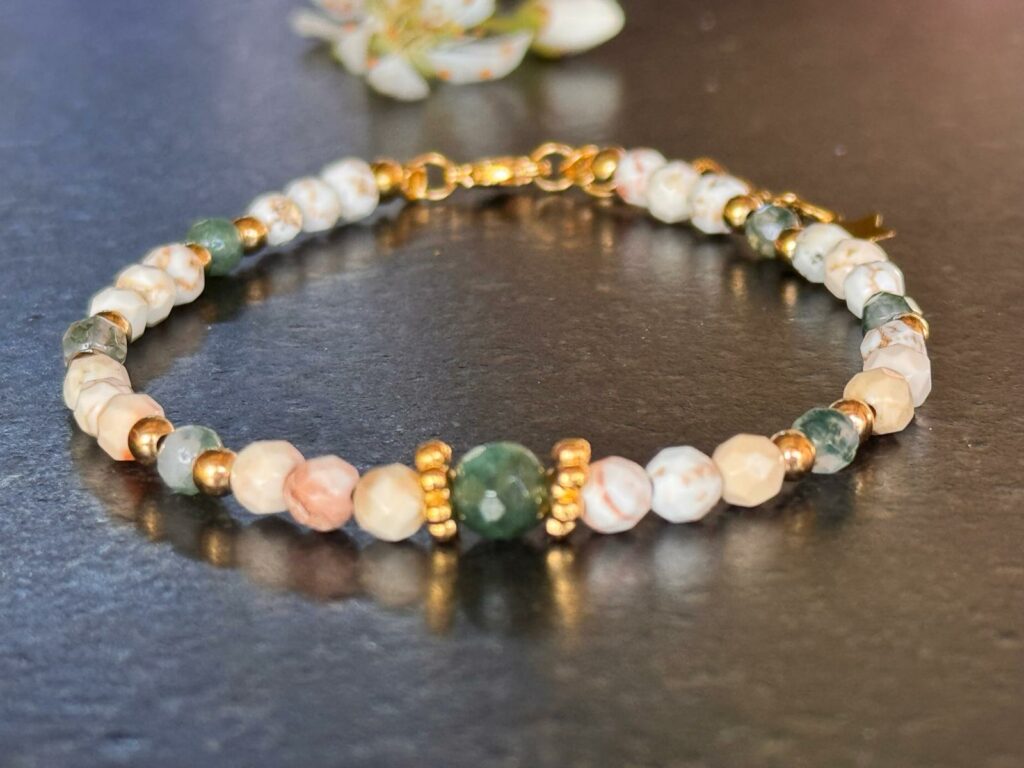 Créatrice dans l’âme, je réalise également des bracelets en pierres naturelles, pensés comme des soins énergétiques personnalisés. Créés sur demande, ou par un élan créatif spontané – ce que j’appelle mes créations « d’un jour ».